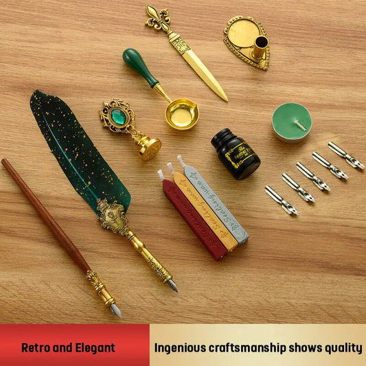 Creative Dipped Feather Pen Retro Lacquer Stamp Pen Set