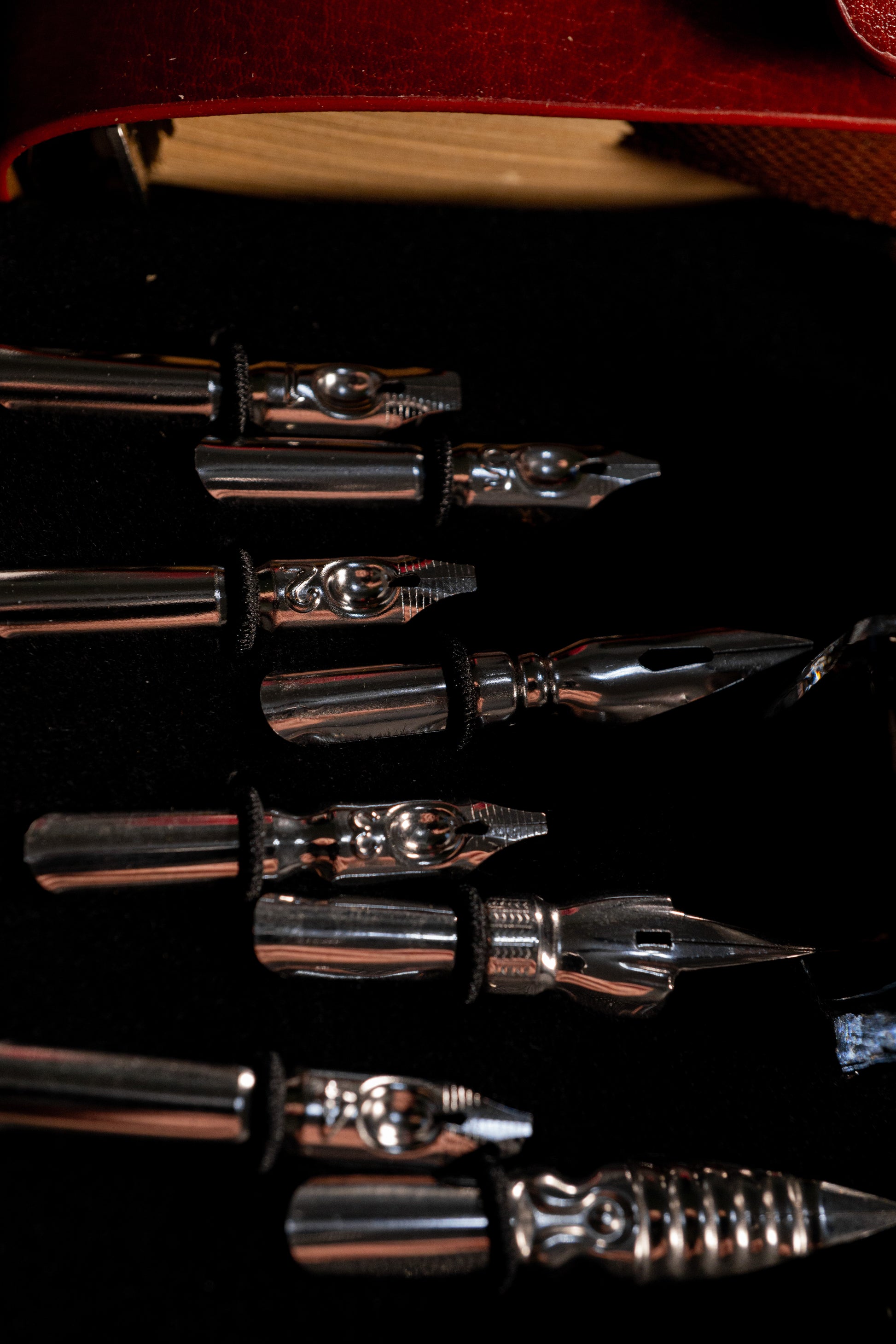 14 Styles: Mechanical Feather Pen 11-Piece Set--Big Red