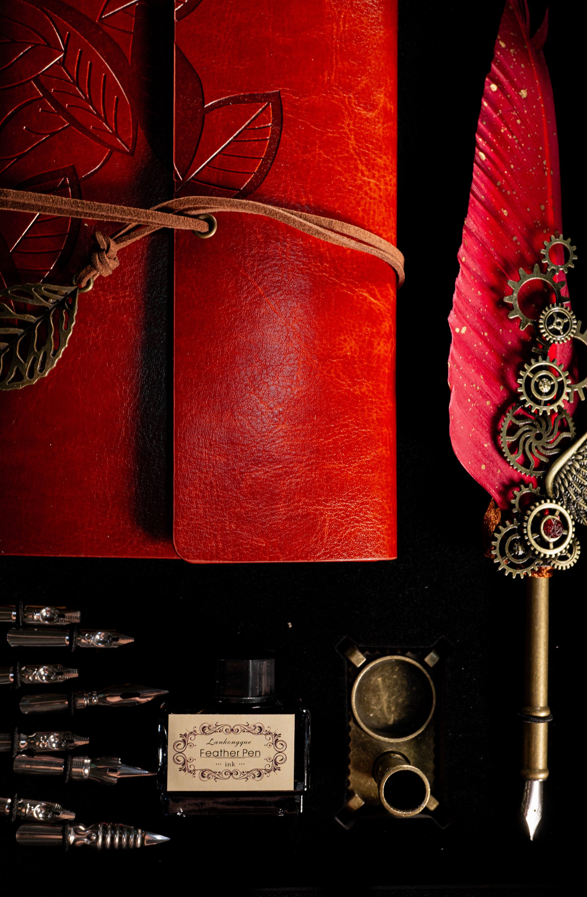 9 styles: wine red mechanical feather pen + travel book 4-piece set